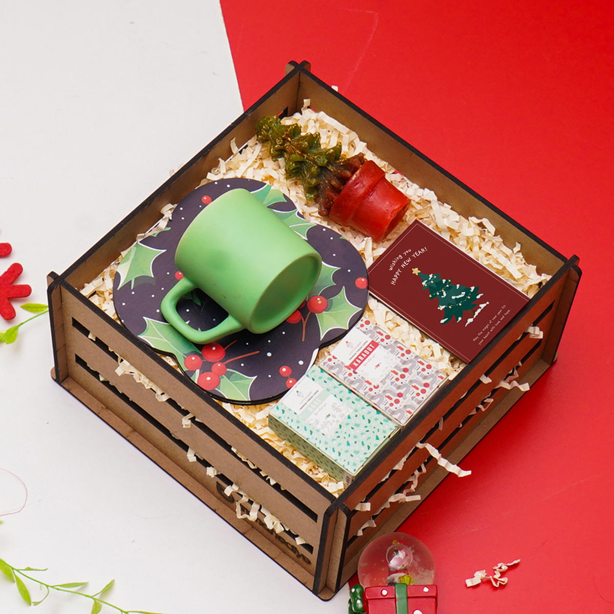 ÜRÜN İÇERİĞİ; Devamlı kullanılabilir ahşap hediye kutusu, Ahşap Sunumlu Türk Kahvesi Fincanı 100ml 2 ad Aromalı Türk Kahvesi 20gr +-3 Çam Mum Magnet Ek görselde temsili paketleme ve süsleme örneği gösterilmektedir.