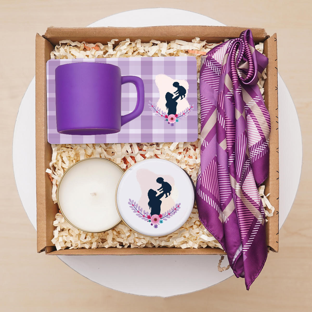 Anneler Günü Hediye Seti & Sunumlu Fincan, Fular, Kokulu Mum
