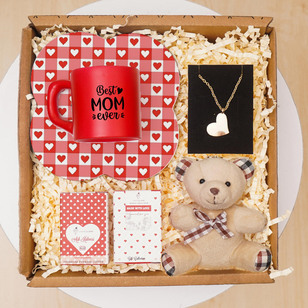 Anneler Günü & Sunumu Fincan, Kalp Kolye, 2Ad Türk Kahvesi, Peluş Anahtarlık
