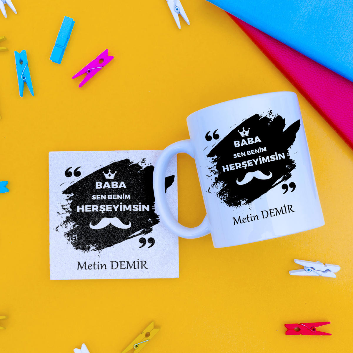 Yaptığımız özel tasarımları kupa bardağınızı ve taş bardak altı setini daha keyifli kullanabilmeniz ve sizi mutlu etmesi için size özel olarak hazırlıyoruz. Porselen malzemeden üretilmiştir. Daha uzun ömürlü kullanmak için elde yıkamanız tavsiye olunur.