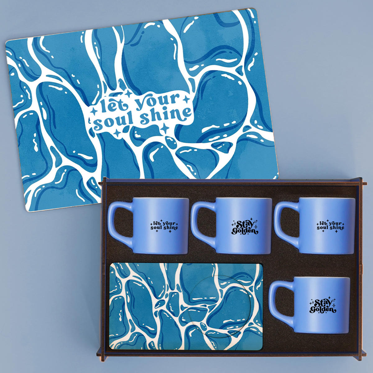 Good Vibes Only. Tasarımlı Ahşap Kutuda 4’lü Türk Kahvesi Fincan Takımı