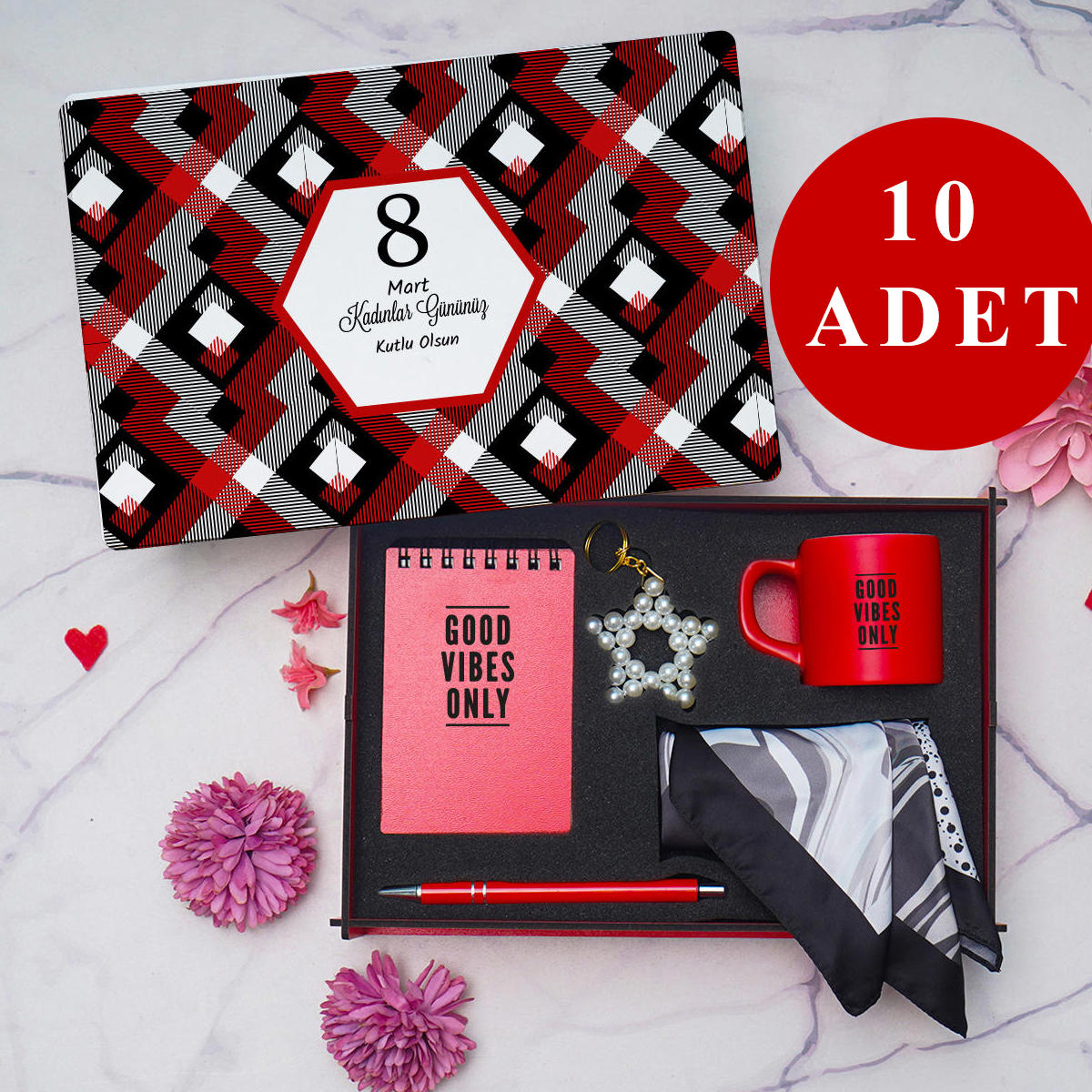 Kadınlar Günü’ne özel 10’lu avantajlı hediye seti, zarif ve kullanışlı ürünleri bir araya getirerek sevdiklerinizi mutlu etmenin en şık yolunu sunar. Kurumsal toplu alımlar ve özel gün sürprizleri için ideal, anlamlı ve ekonomik bir hediye seçeneğidir.Görselde yer alan ürünler 10 adet olarak, her biri ayrı kutulanmış şekilde toplu gönderilmektedir.