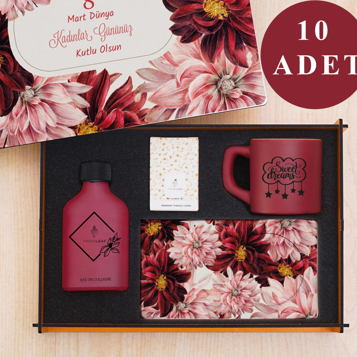 Kadınlar Günü’ne özel 10’lu avantajlı hediye seti, zarif ve kullanışlı ürünleri bir araya getirerek sevdiklerinizi mutlu etmenin en şık yolunu sunar. Kurumsal toplu alımlar ve özel gün sürprizleri için ideal, anlamlı ve ekonomik bir hediye seçeneğidir.Görselde yer alan ürünler 10 adet olarak, her biri ayrı kutulanmış şekilde toplu gönderilmektedir.