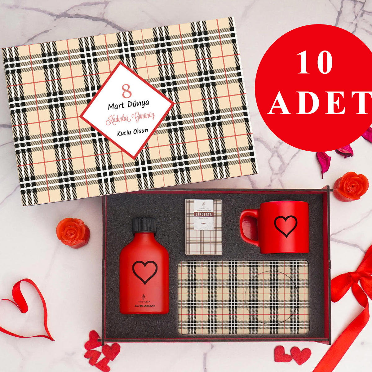 Kadınlar Günü’ne özel 10’lu avantajlı hediye seti, zarif ve kullanışlı ürünleri bir araya getirerek sevdiklerinizi mutlu etmenin en şık yolunu sunar. Kurumsal toplu alımlar ve özel gün sürprizleri için ideal, anlamlı ve ekonomik bir hediye seçeneğidir.Görselde yer alan ürünler 10 adet olarak, her biri ayrı kutulanmış şekilde toplu gönderilmektedir.