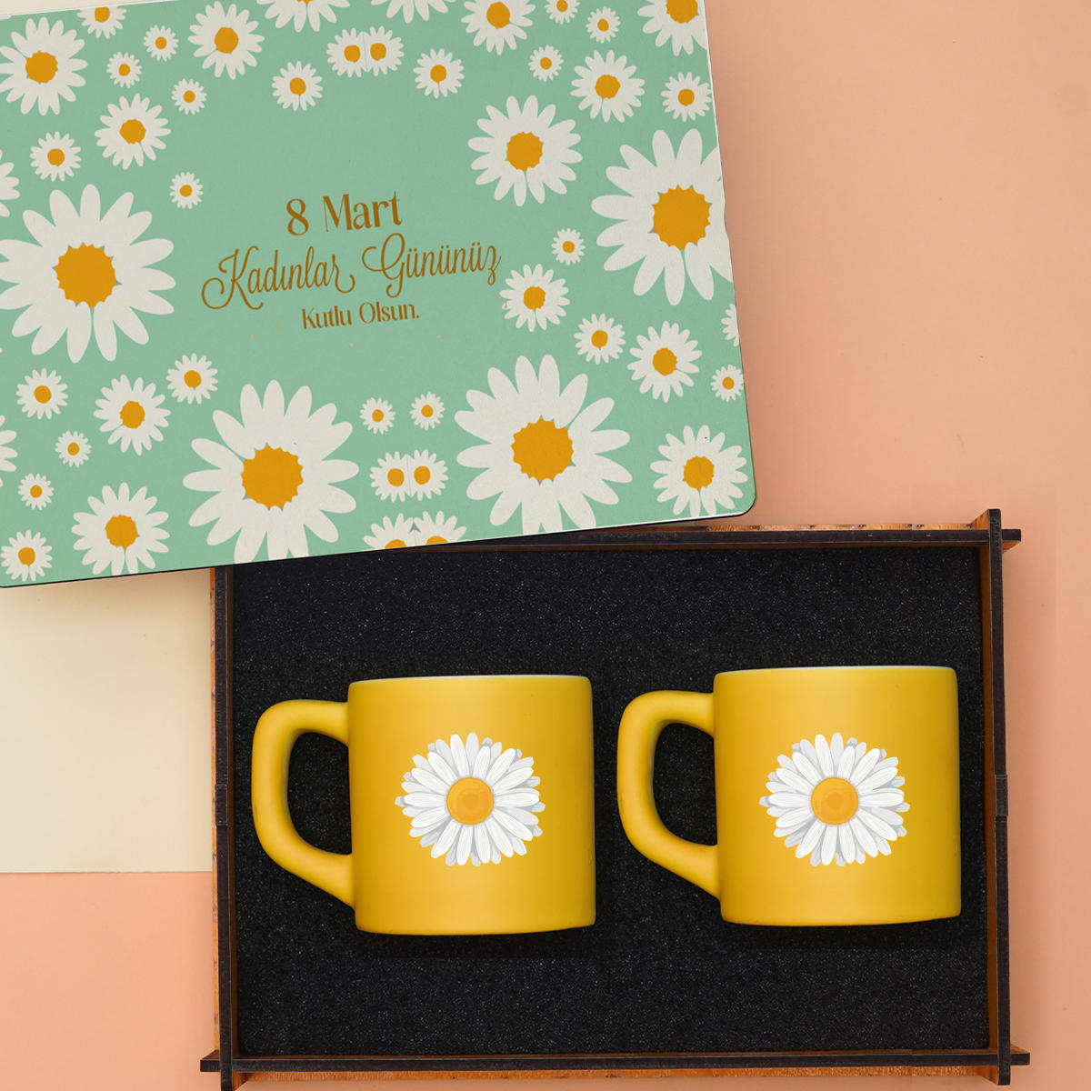 Kadınlar Günü Hediye Seti – Dekoratif Ahşap Kutu & Kahve Fincanı