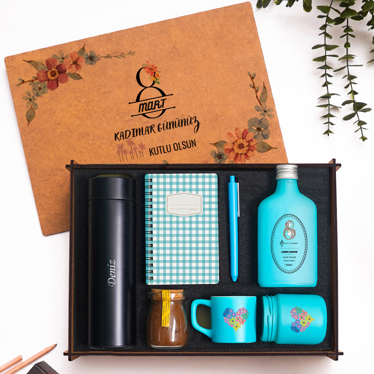 Kadınlar Günü için özel olarak hazırlanan bu Premium Hediye Seti, zarif tasarımı ve günlük yaşamda kullanılabilir ürünleriyle hem anlamlı hem de fonksiyonel bir hediye alternatifi sunar. Şık ve dayanıklı dekoratif ahşap kutu, uzun yıllar anı kutusu veya düzenleyici olarak kullanılabilir.