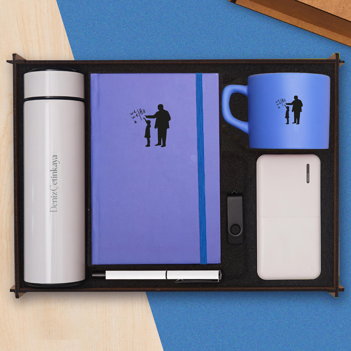 Öğretmenler Günü Premium Hediye Seti & Dereceli Termos, Powerbank, USB Bellek, Defter, Kalem, Kupa Bardak