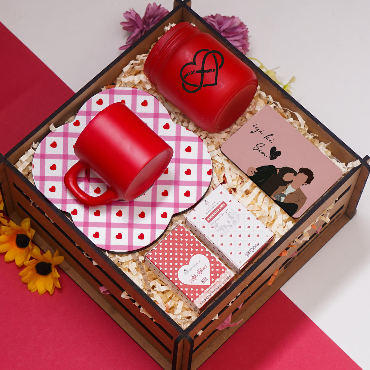 Sevgililer Günü Hediye Seti İçeriği; - Devamlı kullanabilir dekoratif Ahşap Kutu, - Ahşap Sunumlu Kahve Fincanı 100ml - 2 Ad. Aşk Kahvesi Tasarımlı Türk Kahvesi ( 1 Ad = 4 Pişirimlik) - Kokulu Cam Mum - Magnet Hediyeniz son görseldeki gibi şeffaf Jelatin ile süslenerek, ürüne özel taşıma kolisi ile gönderilmektedir. Kutu içerisindeki kırpık renkleri stok durumuna göre farklılık gösteebilir. Kargo aşamasında kutu içeriği görünmemektedir. Hediye seti içerisinde fiyat bilgisi içeren bilgi bulunmamaktadır.