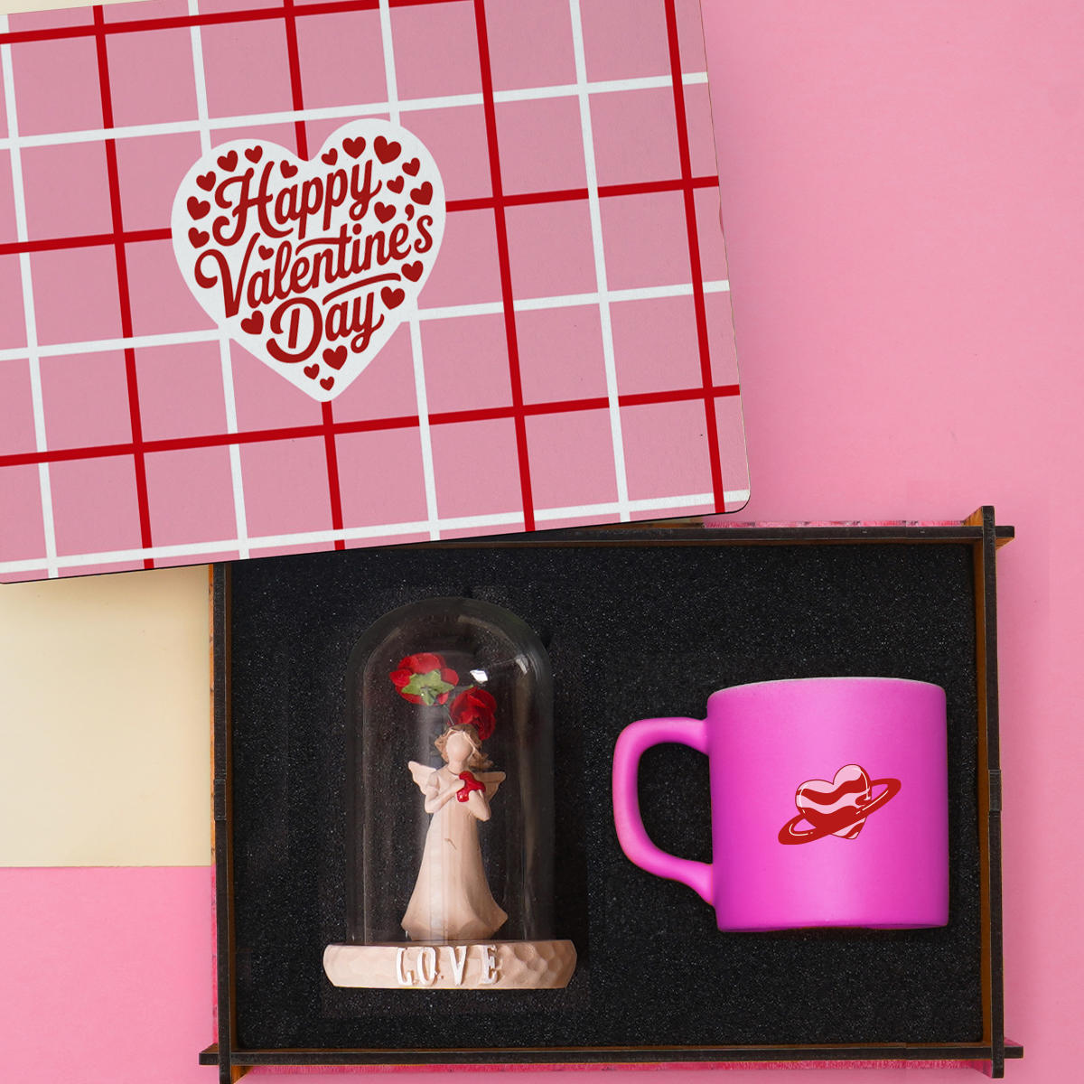 Sevgililer Günü’nde sevginizi zarif ve romantik bir hediyeyle ifade edin. Dekoratif ahşap kutu içerisinde sunulan pembe Seraclass 100 ml seramik kahve fincanı ve Aşk Perisi fanus, romantik ve şık bir hediye alternatifi sunar.