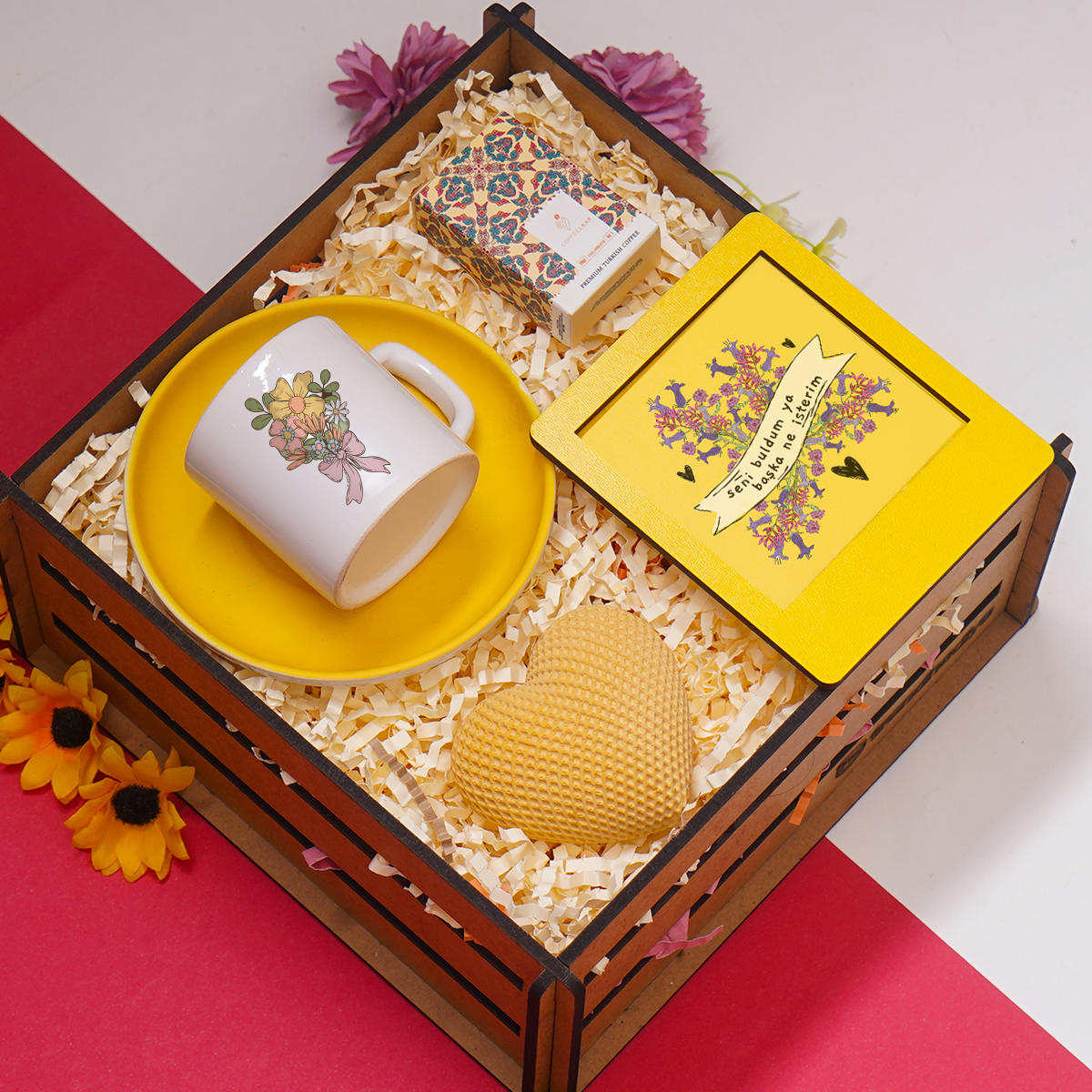Sevgililer Günü Hediye Seti İçeriği; - Devamlı kullanabilir dekoratif Ahşap Kutu, - 100ml Tabaklı Türk Kahvesi Fincanı, - Kalp Biblo, - 4 Pişirimlik Aromalı Türk Kahvesi - Tasarımlı Çerçeve Hediyeniz son görseldeki gibi şeffaf Jelatin ile süslenerek, ürüne özel taşıma kolisi ile gönderilmektedir. Kutu içerisindeki kırpık renkleri stok durumuna göre farklılık gösteebilir. Kargo aşamasında kutu içeriği görünmemektedir. Hediye seti içerisinde fiyat bilgisi içeren bilgi bulunmamaktadır.