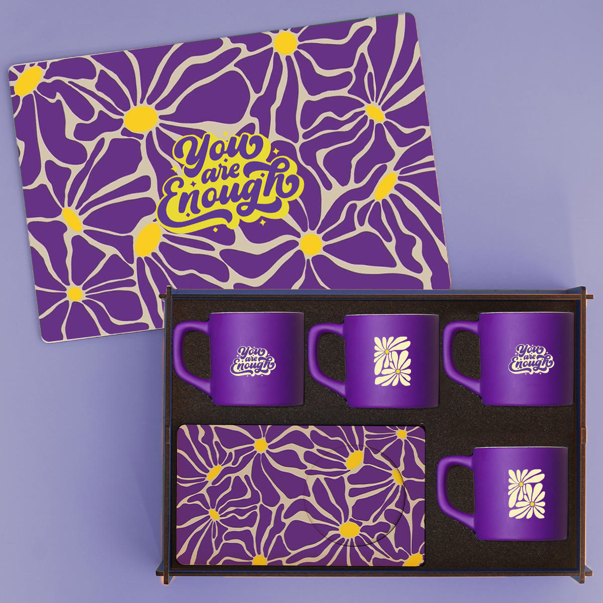 Şık tasarımı ve kaliteli malzemeleriyle bu özel set; misafir ağırlamalarınızı, kahve sunumlarınızı ve hediye seçimlerinizi bir üst seviyeye taşır. Sürekli kullanılabilir ahşap MDF kutusu ve ahşap sunumlukları ile dekoratif bir görünüm sunar. İçerisindeki 4 adet 100 ml seramik Türk kahvesi fincanı, Tasarımı ve modern formuyla her ortama uyum sağlar.