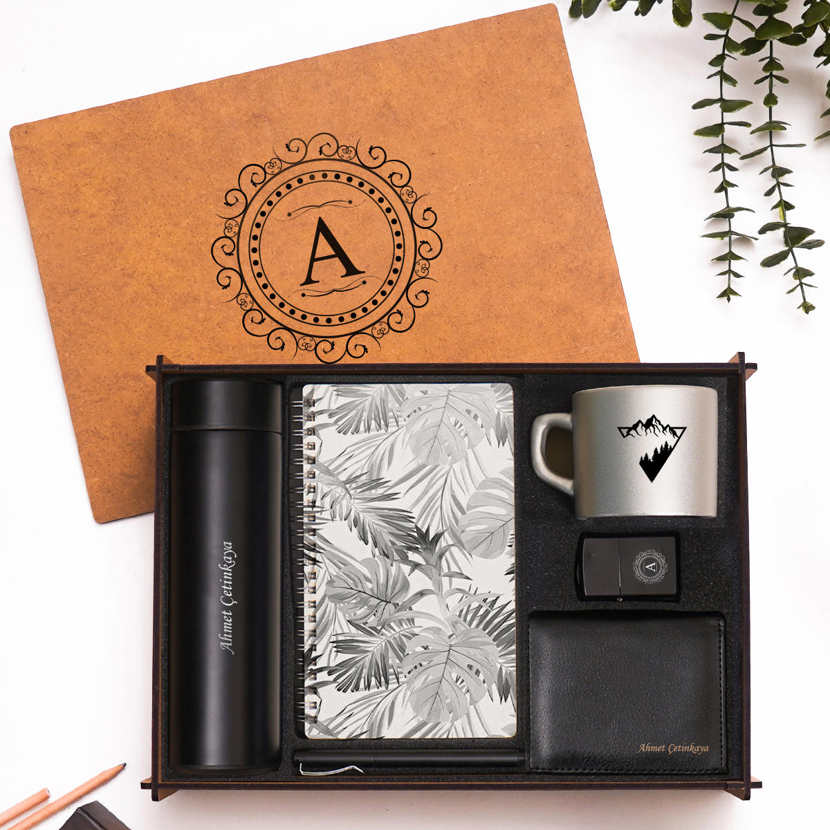 Tasarımlı, dekoratif ve sürekli kullanılabilir ahşap kutu içerisinde sunulan bu özel hediye seti; şıklığı ve günlük kullanımı bir araya getirir.