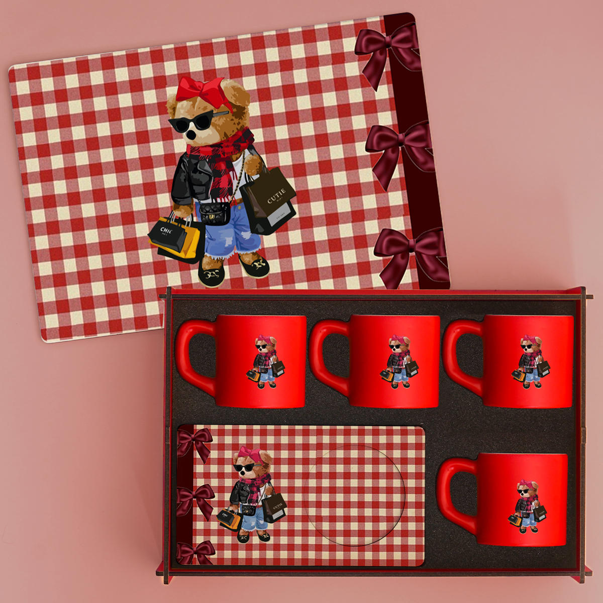 Tasarımlı Sürekli Kullanılabilir Ahşap Kutuda 4’lü Türk Kahvesi Fincan Takımı