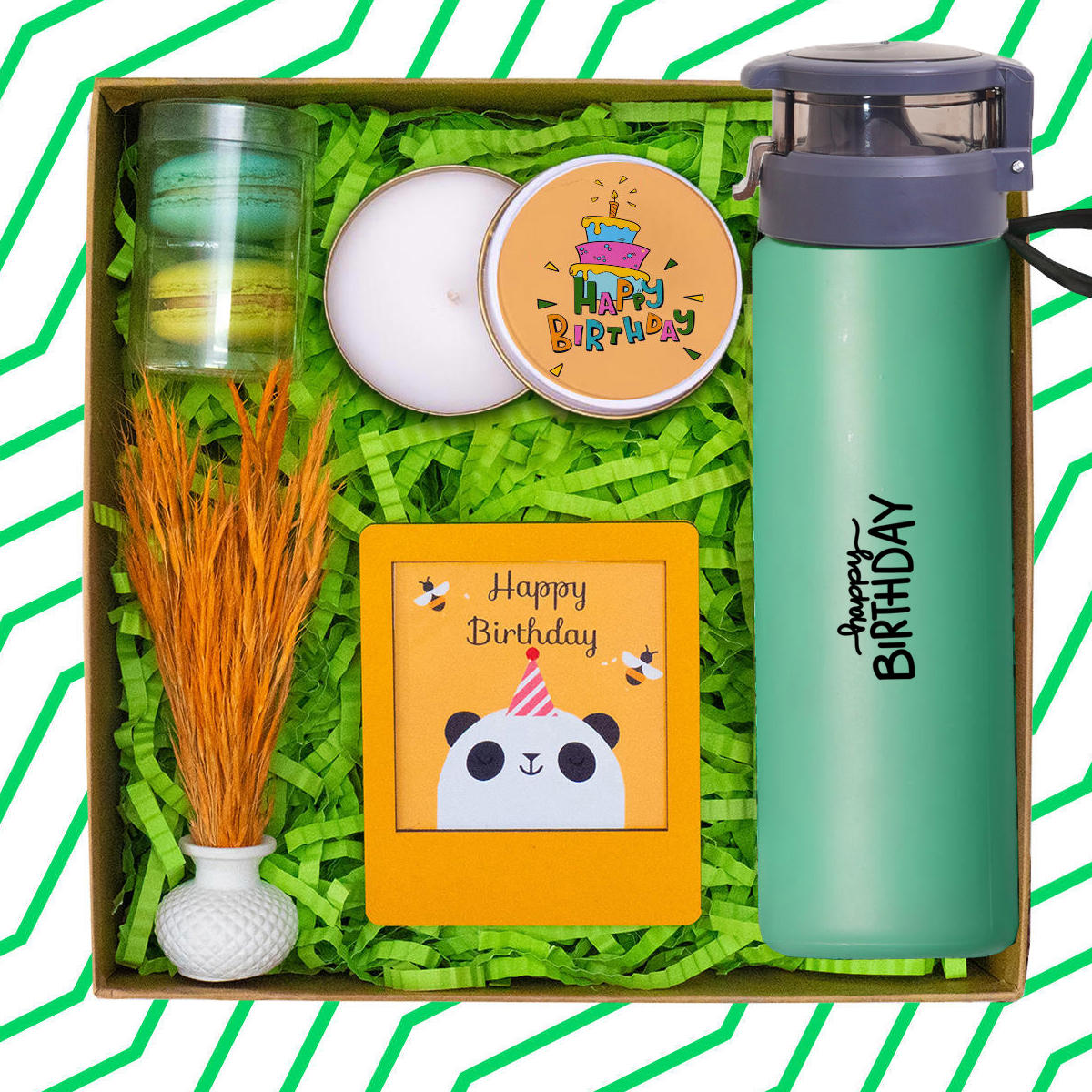 -Seraclass Cam Suluk -2'li Makaron -Candleaf Cheesecake -Ahşap Insta Çerçeve -Beton Saksılı Sukulent Çiçek