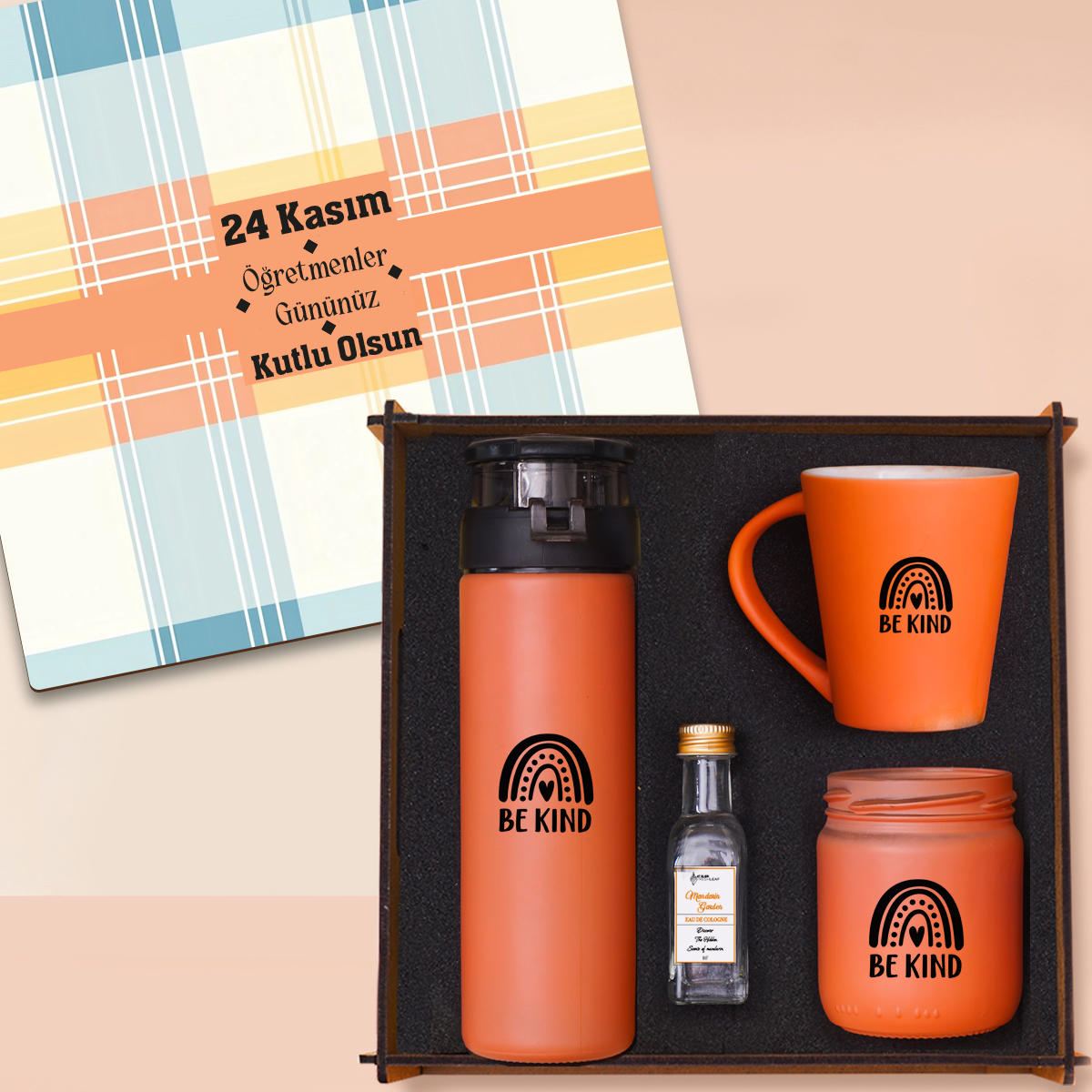 • Woody Collection Öğretmenler Günü Hediye Seti | Cam Suluk, Kupa Bardak, Mum, Kolonya