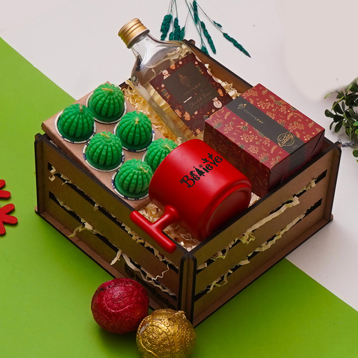 ÜRÜN İÇERİĞİ; Devamlı kullanılabilir ahşap hediye kutusu, 6'li katüs mum, 220ml Fincan, 200ml yılbaşı kolonyası, 50gr Filtre kahve Ek görselde temsili paketleme ve süsleme örneği gösterilmektedir.