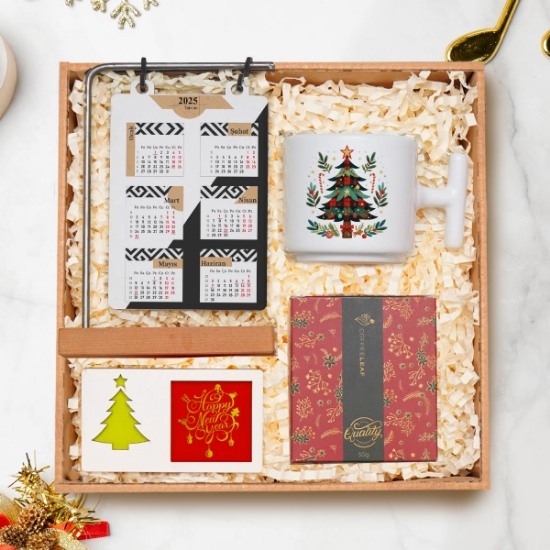 Hediye Seti İçeriği; Doğal ahşap standlı çift yönlü ahşap 2025 takvimi, Seraclass 100ml Türk Kahvesi Fincanı Panoramik Çerçeve, Türk kahvesi 50gr