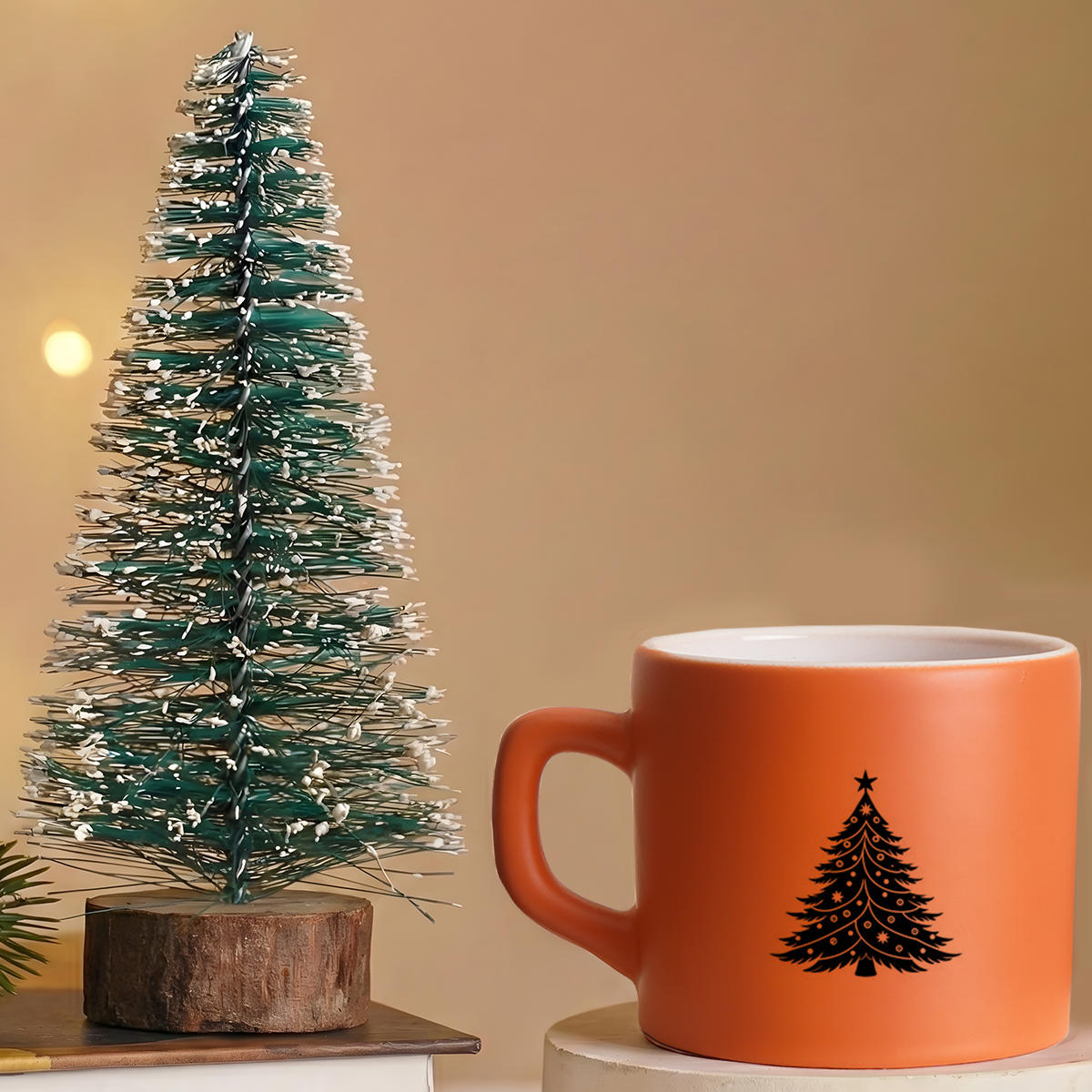 Yılbaşı Hediye Seti 2’li – Turuncu Kupa Bardak 220ml & Dekoratif Çam Ağacı 17cm resmi